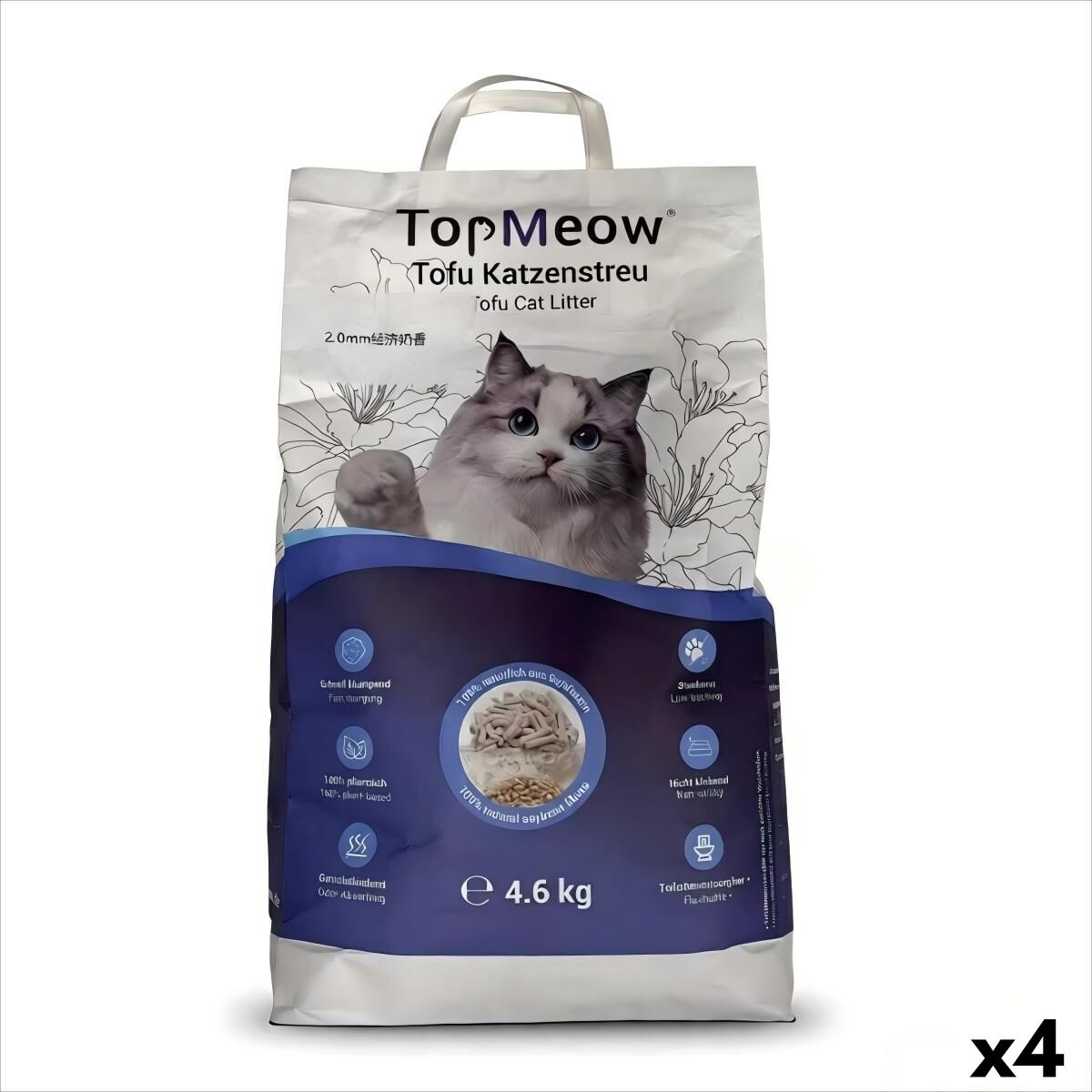 TopMeow Arena Gatti 4,6 kg Crema Assorbente Naturale 4 Pezzi