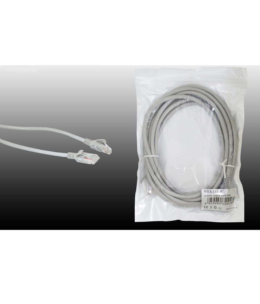 CAVO DI RETE LAN CATEGORIA 5 - RJ45 ETHERNET 3 METRIIl cavo doppia schermatura Ethernet Categoria 5 è realizzato con i connettori pressofusi e con conduttori in rame a traccia che permettono ripetute piegature senza rischi di danneggiamento, prolungando così la vita del cavo. Testato al 100% per reti Ethernet. Ideale per collegare PC, Hub, Print Server, Patch Panel, ecc.