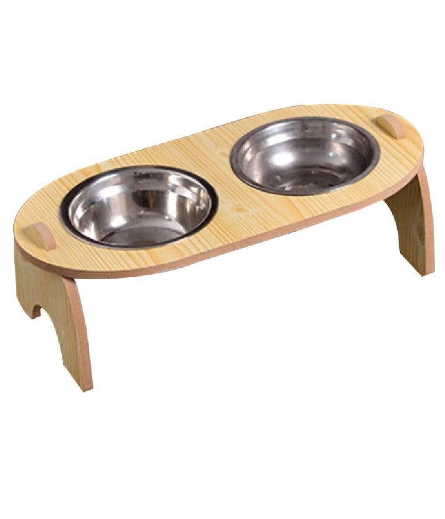 Trade Shop - Ciotola Doppia Rialzata Per Cani Gatti Con Base In Legno Per Animali Domestici -