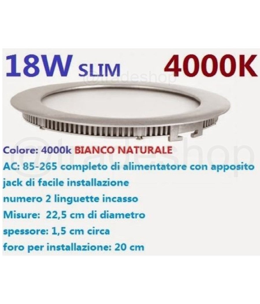 Trade Shop - Pannello Faretto Led 18w Ad Incasso Slim Luce Bianca Calda Neutra Tondo Quadrato - Bianco Caldo Tondo -