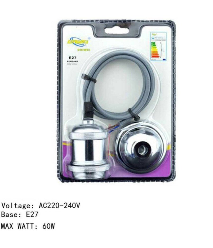 Trade Shop - Portalampada Lampadario Sospensione Soffitto Pendente E27 Vintage 2 Mt Cromato -