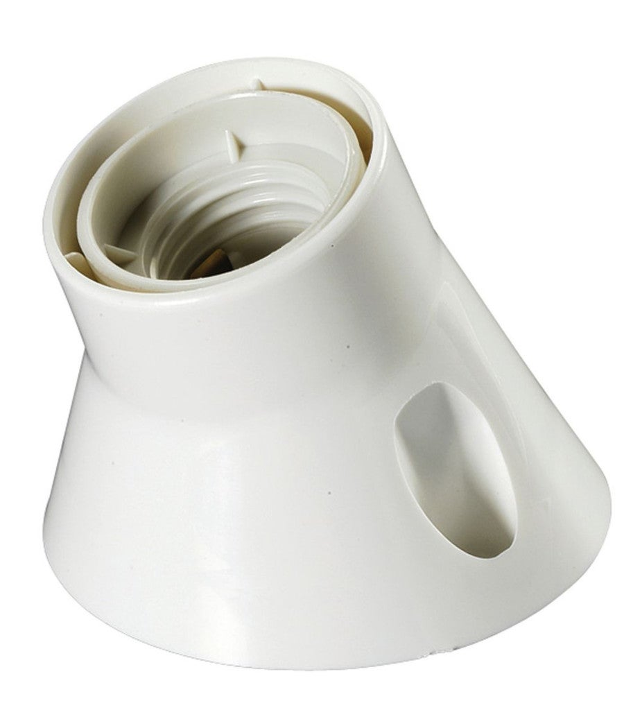 Portalampada termoplastico base curva da parete E27 BIANCO / AVORIOPortalampade a muro per interno con attacco E27, può essere utilizzato con lampade a led o ad incandescenza (max 60w). Il portalampade ha base in plastica (diametro 6.5cm) e dispone di fori per il fissaggio a parete/soffitto. Ideale da utilizzare per punti luce.Grado di protezione IP: IP20Attacco: E27Materiale: Plastica