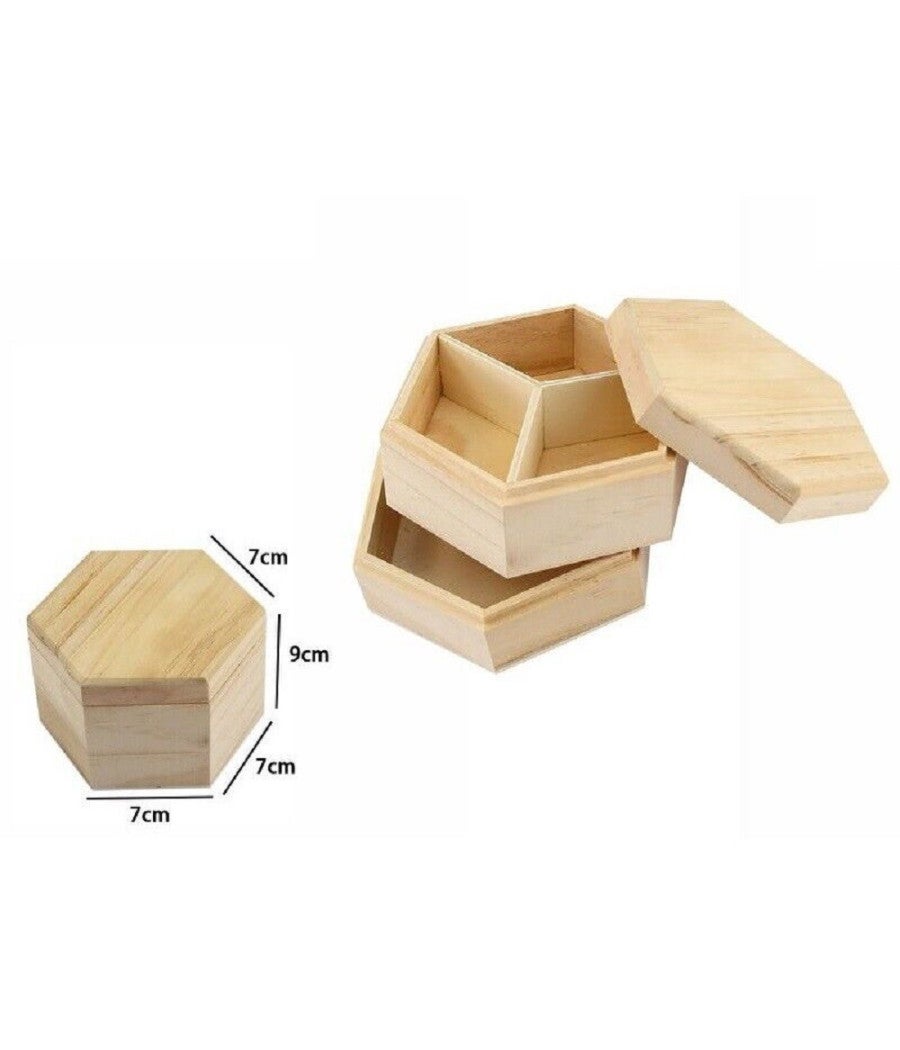 Trade Shop - Scatola Portagioie Esagono In Legno Con Bacheca 2 Piani Posti Scomparti 74020a -