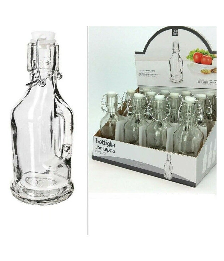 Trade Shop - Set 12 Pezzi Bottiglie Bottigline Vetro Trasparente Con Tappo E Manico 175ml -