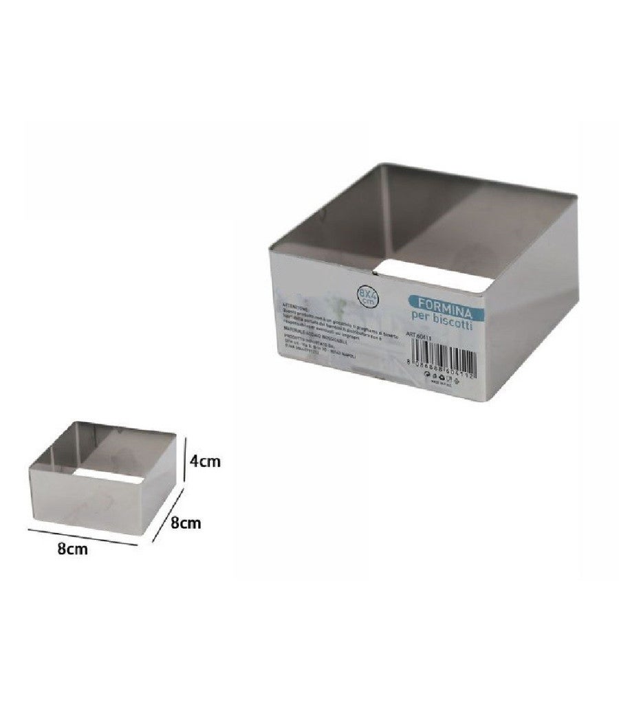 SET 12 PEZZI FORMINA FORME STAMPI PER DOLCI TORTE BISCOTTI QUADRATI 8X4CM 60411Benvenuto nel mondo della pasticceria creativa con il nostro eccezionale set di forme stampi per dolci, torte e biscotti. Se stai cercando di migliorare le performance del tuo sito web attraverso la SEO, è fondamentale non trascurare la descrizione dettagliata dei prodotti, e noi siamo qui per aiutarti.Caratteristiche Principali:Quantità: Il set include 12 pezzi di formine per forme quadrate, offrendoti un'ampia varietà di opzioni creative per i tuoi dolci.Dimensioni: Ciascun stampo ha le dimensioni di 8x8x4cm, ideali per creare deliziosi dessert di dimensioni perfette.Versatilità: Queste formine non sono solo adatte per torte, ma anche per biscotti e altri dolci creativi, offrendoti la flessibilità necessaria in cucina.Contenuto della Confezione: Il set è accuratamente confezionato per garantire la sicurezza e l'integrità dei prodotti durante la spedizione. Ogni confezione include:12 Formine Quadrate: Realizzate con materiali di alta qualità per una durata e una resistenza superiori.Rendiamo la tua esperienza di cottura unica con questo set di forme stampi di alta qualità. Sia che tu sia un esperto chef o un principiante appassionato, questo set si adatterà perfettamente alle tue esigenze.Abbiamo creato questo set con l'obiettivo di fornirti gli strumenti perfetti per trasformare la tua cucina in uno spazio di creatività e delizia gastronomica. Ordina ora e inizia a creare dolci straordinari!Acquista il nostro Set 12 Pezzi Formina Forme Stampi per Dolci Torte Biscotti Quadrati e lasciati ispirare dalla dolcezza della tua immaginazione.