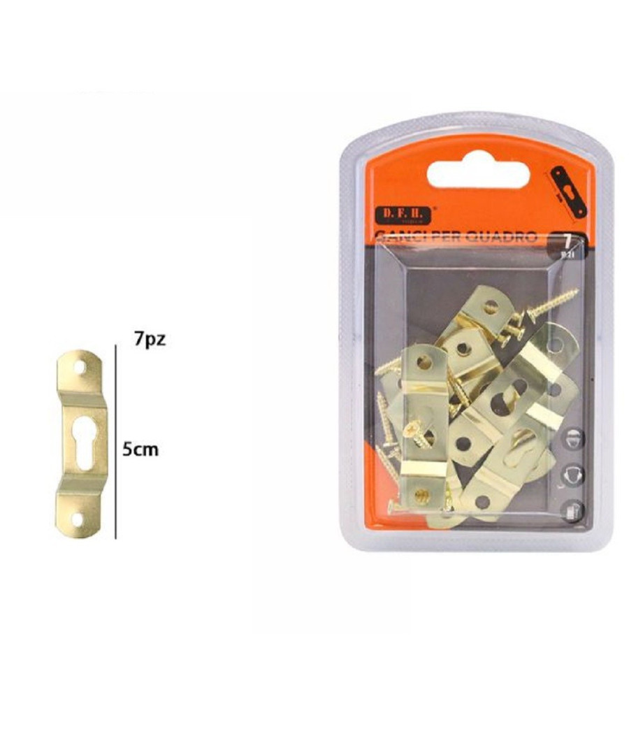 Trade Shop - Set 7 Pezzi Ganci Dorati Per Quadri Quadro Cornici Appendere Parete 5 Cm 07520 -