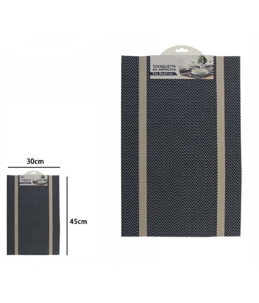Tovaglietta Tovagliette Colazione All'Americana Cucina Tavola 30X45Cm Grigia Con RigheLa tovaglietta per la colazione è un elemento essenziale per completare l'atmosfera accogliente e familiare della tua cucina o della tua tavola da pranzo. Con le sue dimensioni di 30x45cm, questa tovaglietta grigia con righe aggiunge un tocco di stile e praticità al tuo ambiente.Caratteristiche Principali:Design All'Americana: Il design di questa tovaglietta si ispira allo stile tradizionale delle tovagliette americane, aggiungendo un tocco di nostalgia e charme alla tua casa.Materiale Resistente: Realizzata con materiali di alta qualità, questa tovaglietta è resistente alle macchie e facile da pulire, garantendo una lunga durata e un aspetto impeccabile nel tempo.Dimensioni Ideali: Con una dimensione di 30x45cm, questa tovaglietta è perfetta per la colazione, il pranzo o la cena, offrendo abbastanza spazio per posate, piatti e bicchieri.Contenuto della Confezione:1 x Tovaglietta Tovagliette Colazione All'Americana Cucina Tavola 30X45Cm Grigia Con RigheAggiungi un tocco di charme e praticità alla tua cucina o alla tua tavola da pranzo con questa tovaglietta grigia all'americana. Con il suo design accattivante e le dimensioni ideali, sarà il complemento perfetto per ogni pasto.