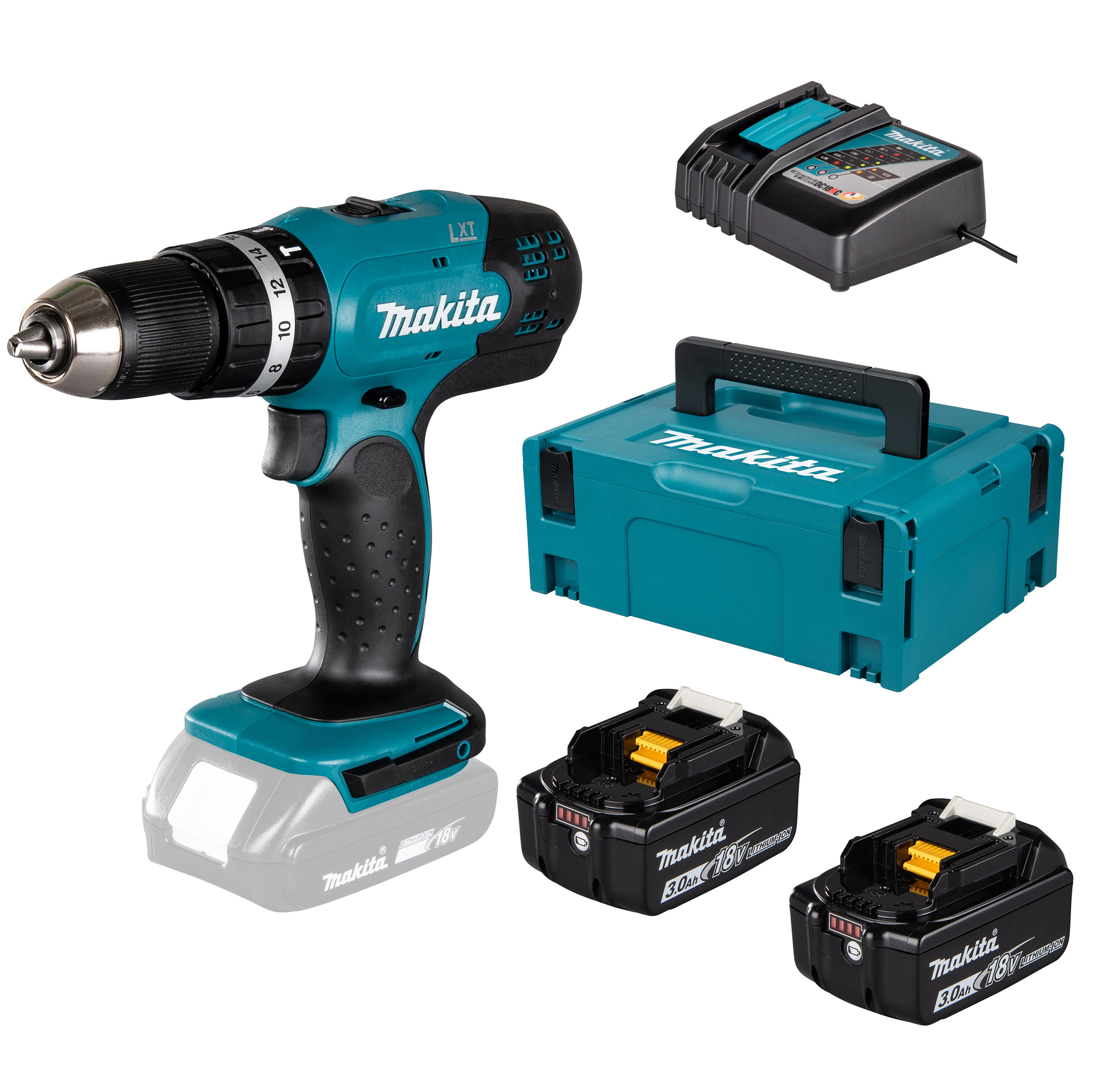Trapano a percussione a batteria MAKITA DHP453RFJ 18V 3Ah, 2 batterie in valigetta in plastica