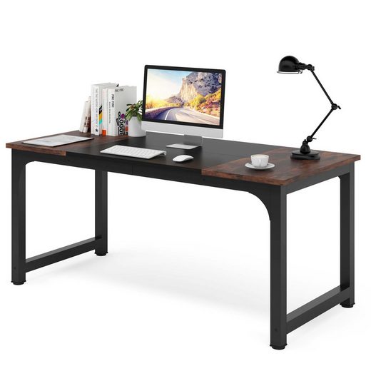Tribesigns Scrivania, scrivania per ufficio, 180 x 80 x 75 cm, marrone rustico/nero)