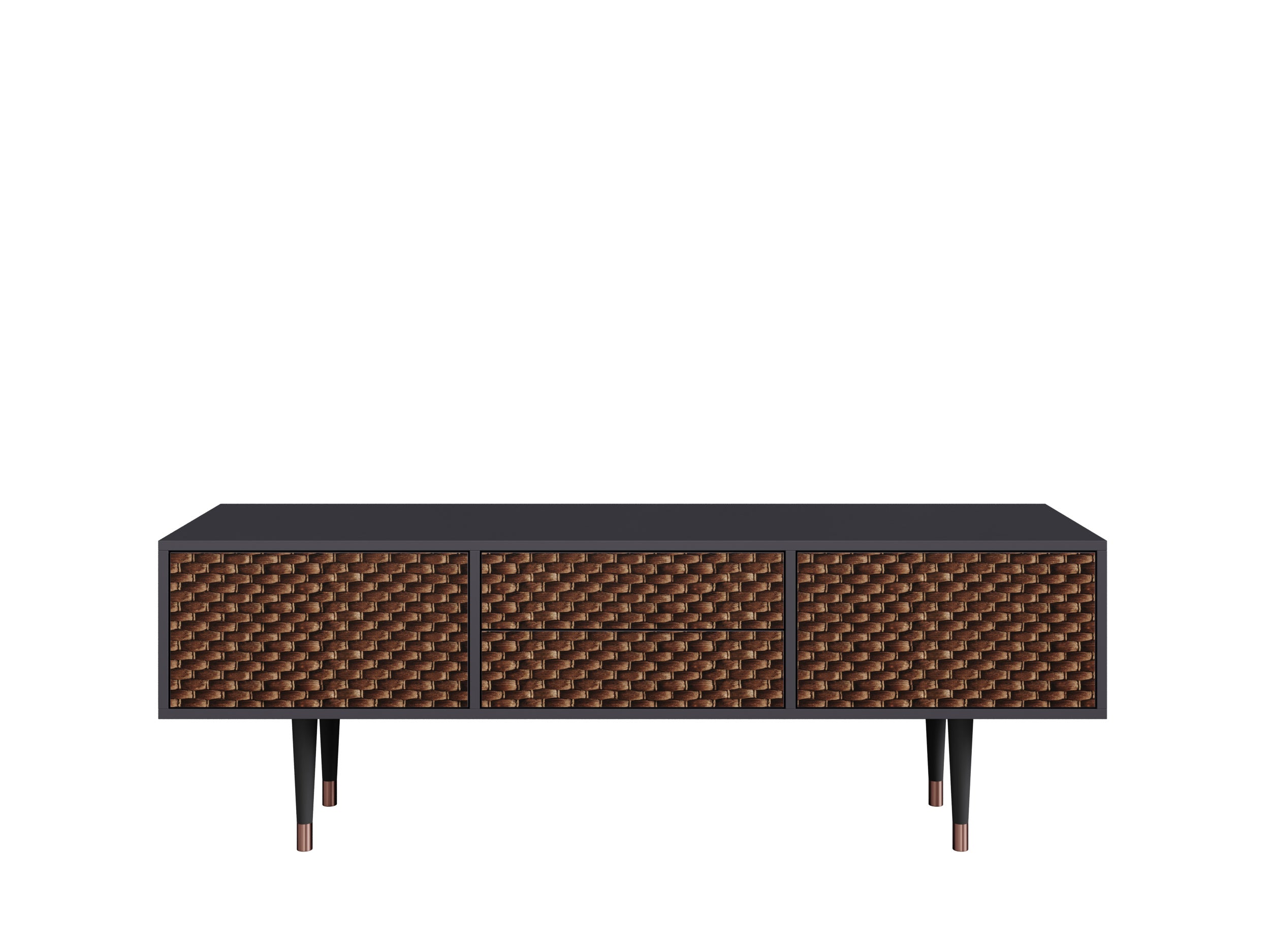 La moderna TV tomba presenta un design unico che valorizza il vostro arredamento e la vostra personalità. Grazie all'innovativa tecnologia di stampa UV, offriamo una vasta gamma di opere d'arte esclusive, perfette per le vostre esigenze. La stampa utilizza inchiostri di alta qualità, caratterizzati da una notevole resistenza sulla superficie del prodotto. Inoltre, l'immagine è protetta da un robusto rivestimento opaco di un noto produttore di vernici ecologiche. La tomba è realizzata con materiali di alta qualità, che riproducono in modo impeccabile le tonalità del noce, del rovere e dell'antarctica. I bordi frontali sono adornati con nastri in rame per la versione in noce e in ottone per quella in rovere, evidenziando l'eleganza di questo mobile. Le gambe della TV tomba sono realizzate in legno naturale, verniciate per abbinarsi al corpo del mobile e protette da anelli in rame o ottone per prevenire danni durante le pulizie. L'altezza della tomba facilita le operazioni di pulizia dell'ambiente, consentendo al vostro robot aspirapolvere di rimuovere la polvere senza difficoltà. Questo mobile è dotato di due ante e due cassetti, che si aprono tramite un sistema push.