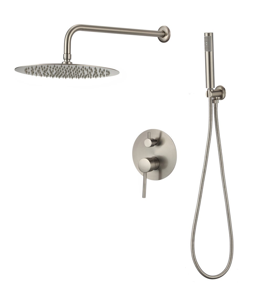 La doccia rotonda da incasso della serie Jucar offre un design elegante e moderno con finitura in acciaio spazzolato. Ideale per i bagni contemporanei, coniuga funzionalità e estetica minimalista. Goditi due opzioni di uscita dell'acqua, il soffione a pioggia e il soffione portatile, adattandoli alle tue preferenze per ogni doccia.