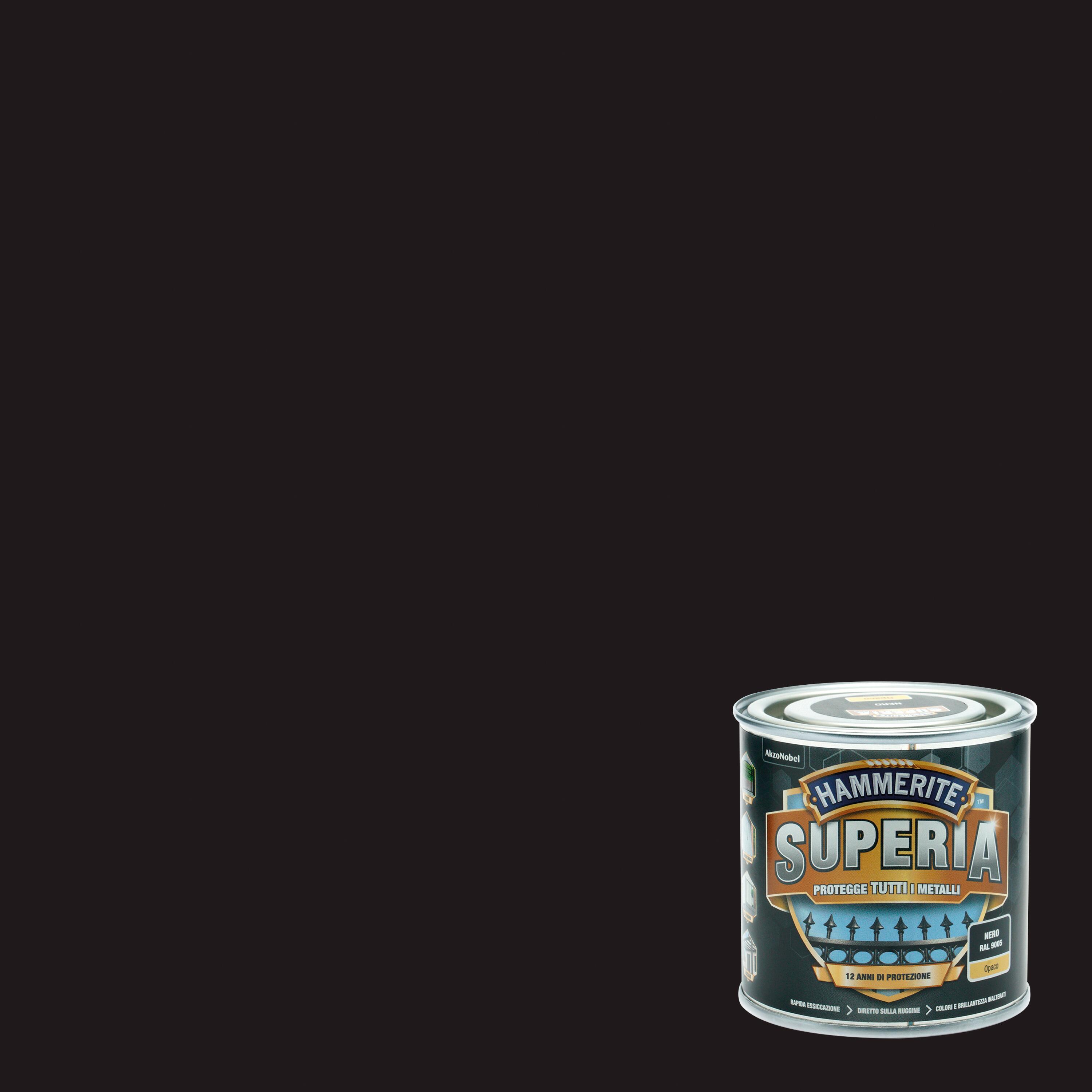 Vernice da esterno antiruggine per ferro HAMMERITE Superia nero opaco, 0.25 l