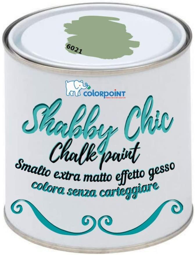 Vernice Shabby Chic CHALK PAINT 1 Litro - Verde Salvia 6021 - Pittura Extra Opaca - Colora senza Carteggiare