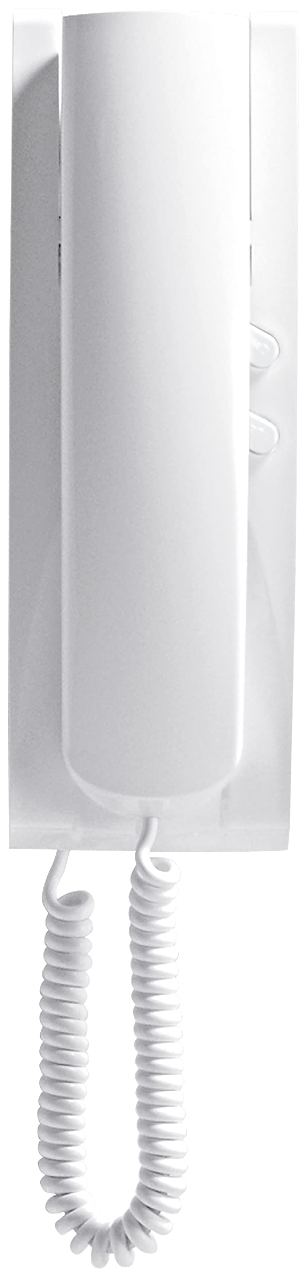 CITOFONO DA PARETE PER SISTEMA DUE FILI PLUS CON 2 PULSANTI PER LE FUNZIONI APERTURA SERRATURA E SERVIZIO AUSILIARIO (LUCE SCALE), COLORE BIANCO.