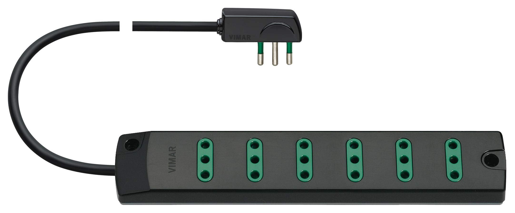 VIMAR FP00402.C Presa mobile multipla con 6 uscite SICURY P11 (piccole), cavo 1,5 m e spina piatta 2P+T 10A (piccola) standard italiano tipo SPA11, Ne