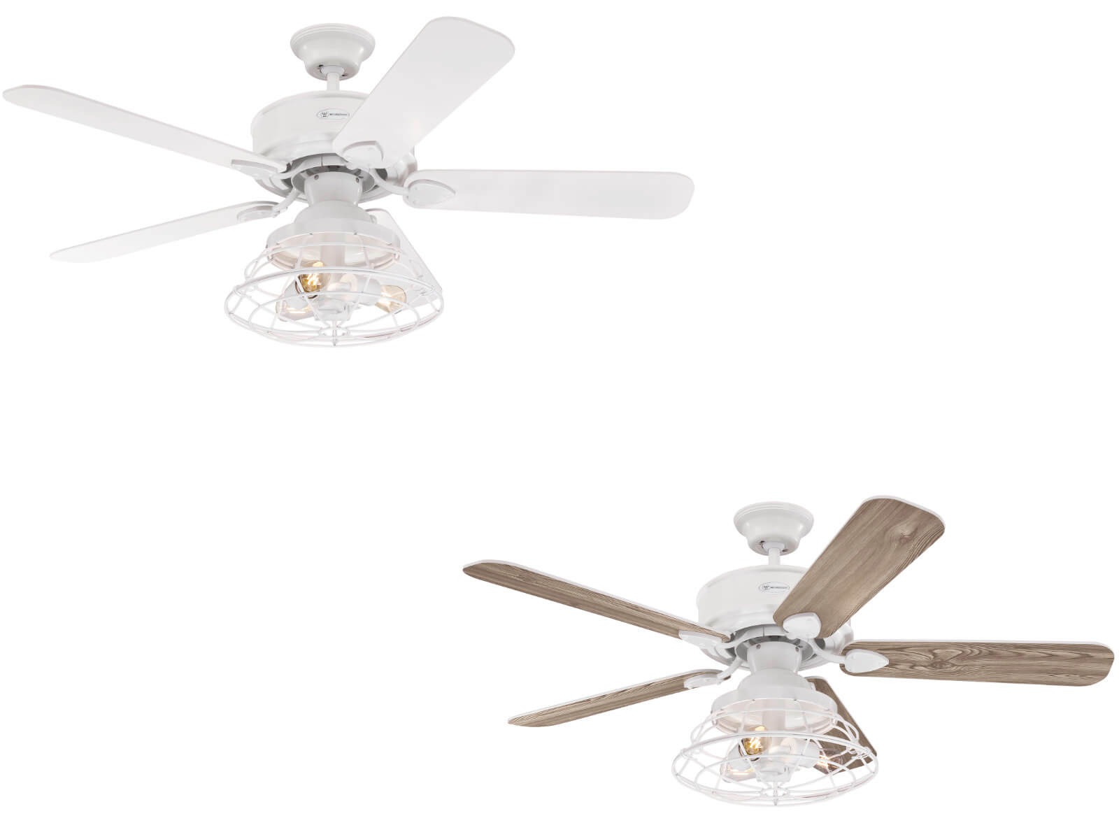 L'ESTETICA INDUSTRIALE DEL VENTILATORE DA SOFFITTO BARNETT WESTINGHOUSE DA 122 CM PRESENTA UN DESIGN DISTINTIVO CHE SI ADATTA AD UNA VARIETÀ DI STILI DECORATIVI CASALINGHI, DA VINTAGE INDUSTRIALE A RUSTICO. IL KIT DI LUCE CON PARALUME A GABBIA E LAMPADINE LED IN STILE VINTAGE AGGIUNGE UN TOCCO RETRO. SCEGLIERE TRA LAME REVERSIBILI IN PINO LAVATO BIANCO O BIANCO PER COMPLETARE IL LOOK. NUMERO DI RIFERIMENTO PRODOTTO 72209.