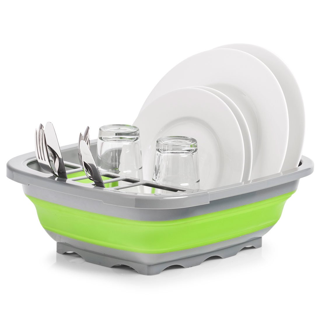 LO SCOLAPIATTI PIEGHEVOLE DI ZELLER È LA SOLUZIONE IDEALE SOPRATTUTTO PER PICCOLE CUCINE CON POCO SPAZIO DI APPOGGIO. IL CESTINO SI APRE FACILMENTE ED È PRONTO ALL'USO. IL PORTAPOSATE INTEGRATO OFFRE SPAZIO PER PIATTI, POSATE E BICCHIERI. I SUPPORTI PER LE POSATE POSSONO ESSERE RIMOSSI SE NON SONO NECESSARI. NELLA PARTE INFERIORE DEL CESTELLO SONO PRESENTI DEI FORI PER LO SCARICO OTTIMALE DELL'ACQUA DI RISCIACQUO. UNA VOLTA ASCIUGATE LE STOVIGLIE, LO SCOLAPIATTI PUÒ ESSERE RIPIEGATO E RIPOSTO IN MODO PIATTO. LA PULIZIA DELL'UTENSILE DA CUCINA VERDE PUÒ ESSERE EFFETTUATA A MANO O IN LAVASTOVIGLIE.