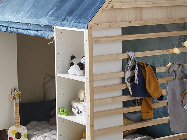 La forma a casetta è piuttosto semplice da realizzare e permette di portare una nota originale e divertente nello spazio. I sogni del piccolo di casa voleranno ancora più in alto.
