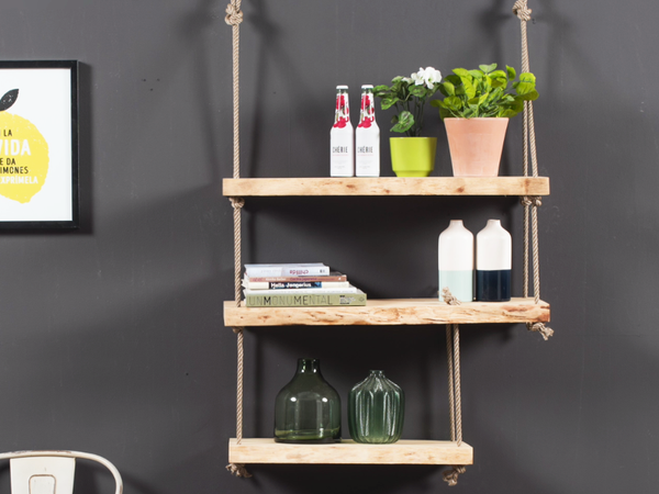 Per completare lo stile della tua casa, potresti creare qualche altra mensola sospesa in legno grezzo e corda utilizzando lo stesso procedimento che ti illustriamo in questo tutorial.
