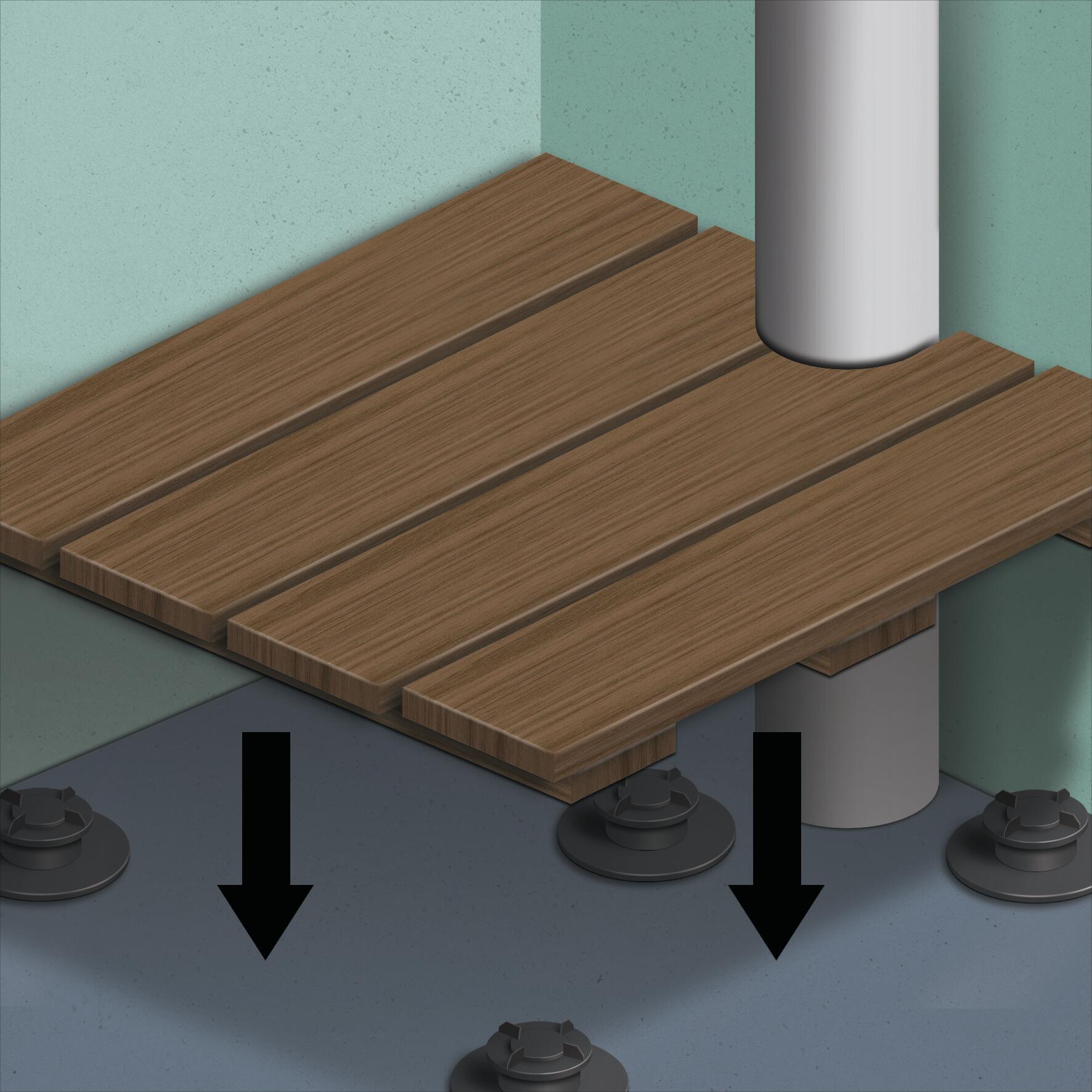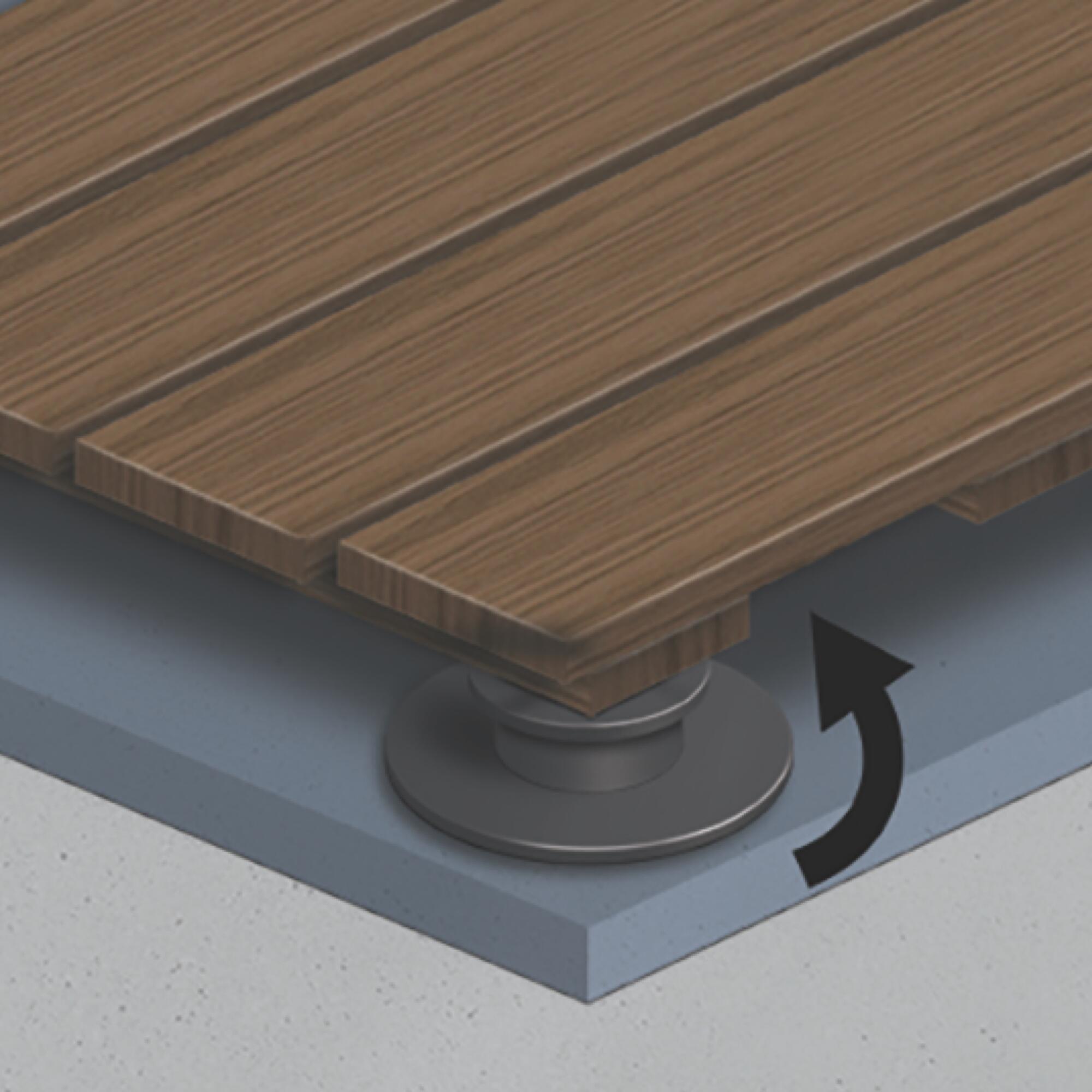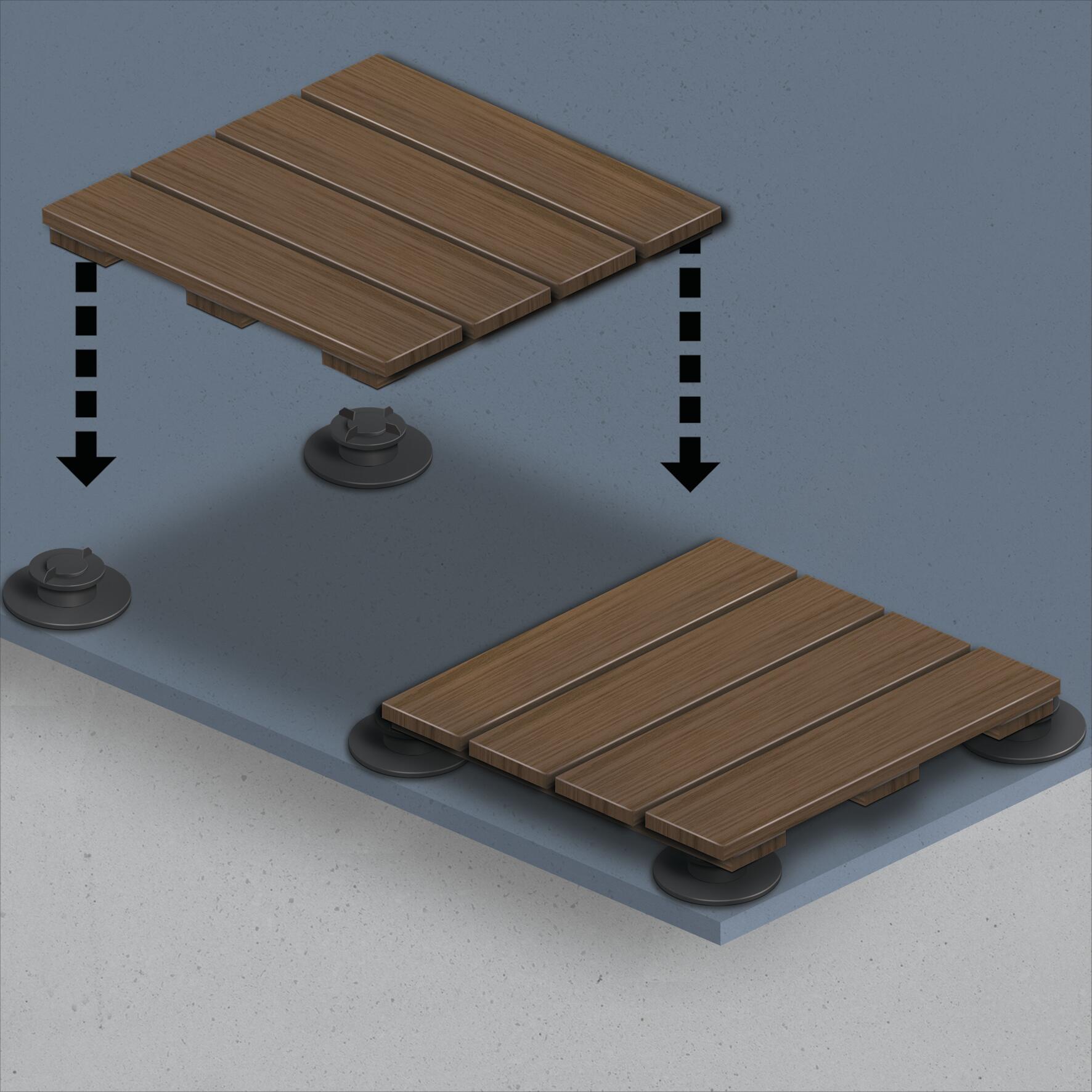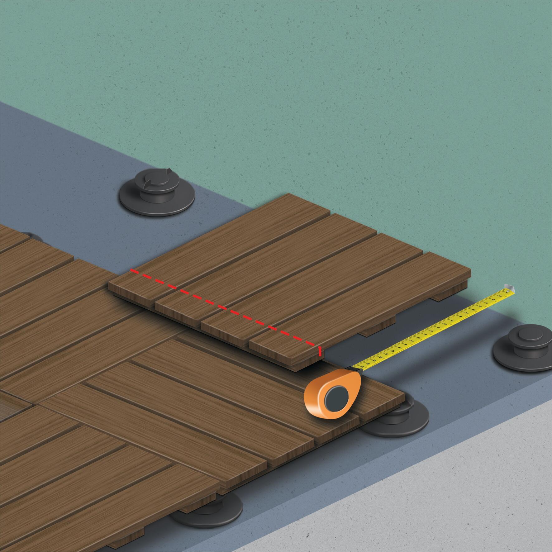 Uno spazio esterno diventa ancora più godibile e funzionale se dotato di un pavimento in legno a quadrotti o a listoni. Elegante, ordinato, comodo viene appoggiato su una struttura che non trattiene l’acqua e permette al legno di respirare. La posa sarà semplificata utilizzando delle basi regolabili e, nel caso dei listoni, di travetti. Farlo è facile: posa le piastrelle in legno o, in alternativa, travetti e listoni, effettua i tagli e rifinisci i bordi.