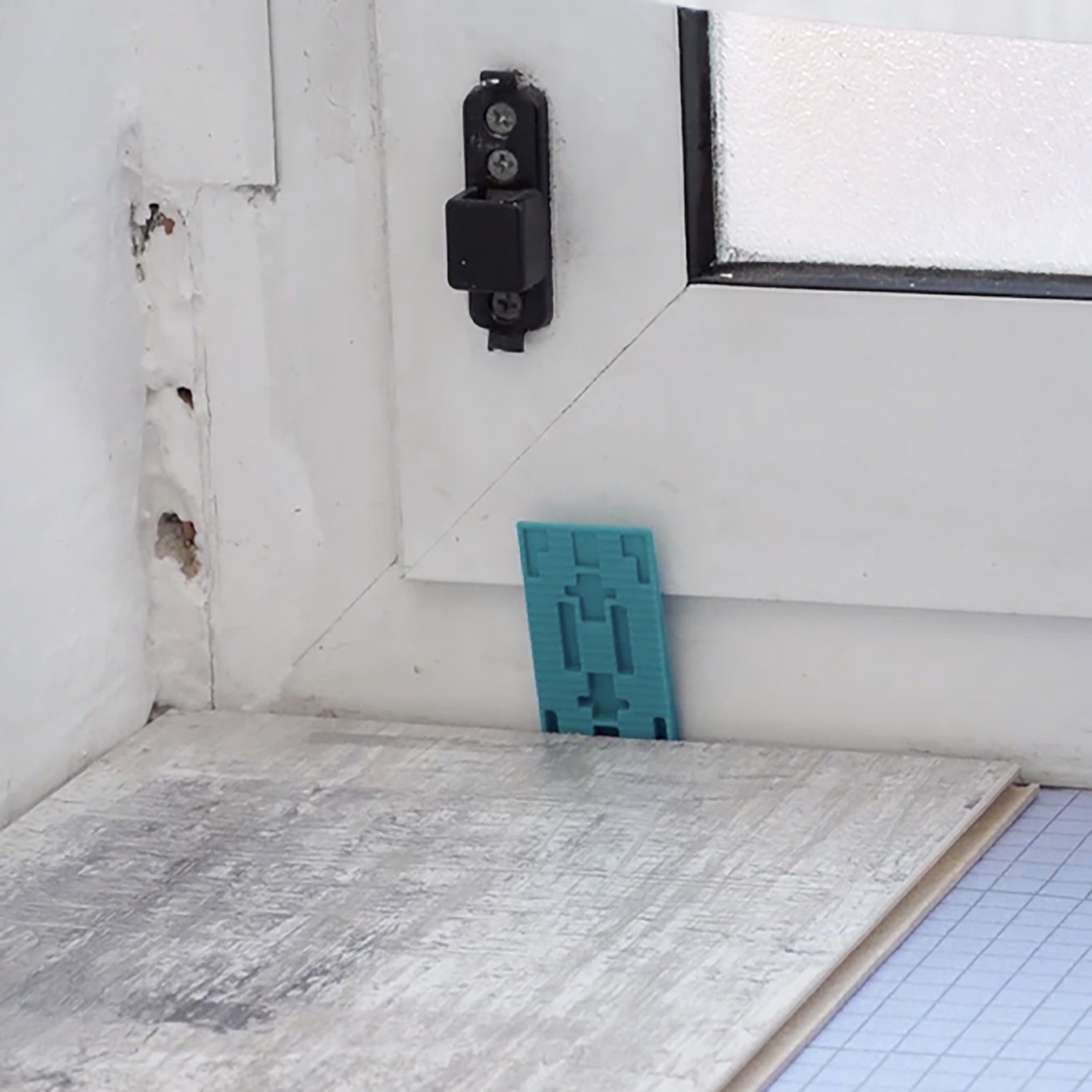 I cunei: Prima di procedere con le file successive, inserisci i cunei per creare lo spazio di dilatazione tra le estremità delle doghe e il muro.