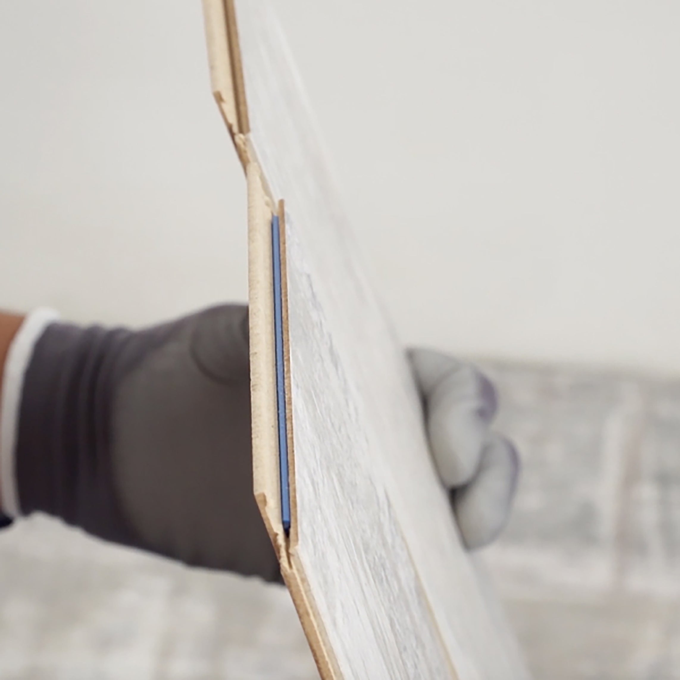 Il click rapido: È un sistema ad incastro semplificato, che rende la posa ancora più semplice e veloce: non hai bisogno di creare una fila intera prima di incastrarla. Lo riconosci dalla presenza di una linguetta blu.