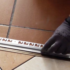 Il profilo di giunzione: Applica una soglia per dividere i pavimenti tra diverse zone della casa. Separa il profilo di copertura dal profilo di supporto, stendi sul retro di quest’ultimo un cordone di silicone e poi applicalo in prossimità della soglia.
