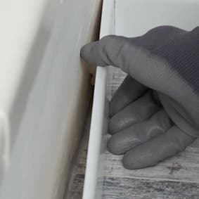 I battiscopa: Incolla i battiscopa: tagliali a 45° e stendi sul retro alcuni punti di silicone.